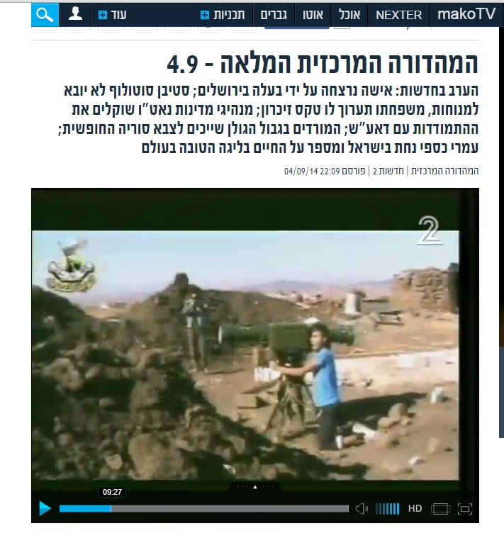 במהדורת חדשות 2 דווח אמש על הלחימה בסוריה ובמרחב קונייטרה בגולן בפרט. בכתבה של אהוד יערי תוארה הלחימה ובתחילתה (דקה-9:27 בסרטון) מצולם מורד סורי יורה טיל נ"ט לעבר עמדות צבא אסד. לא משהו חריג, לא ממש חדש, אז למה אני מטריח אתכם?