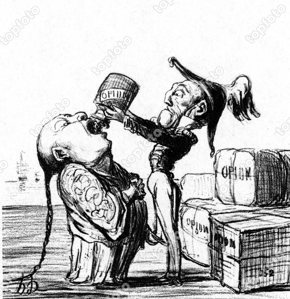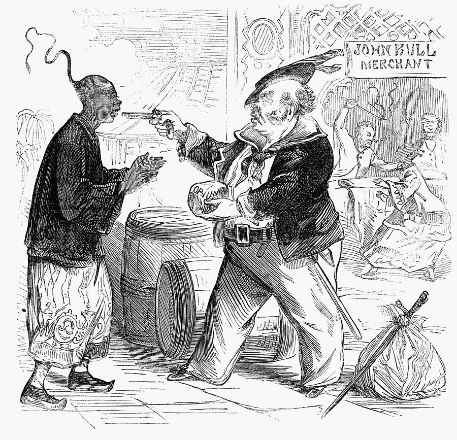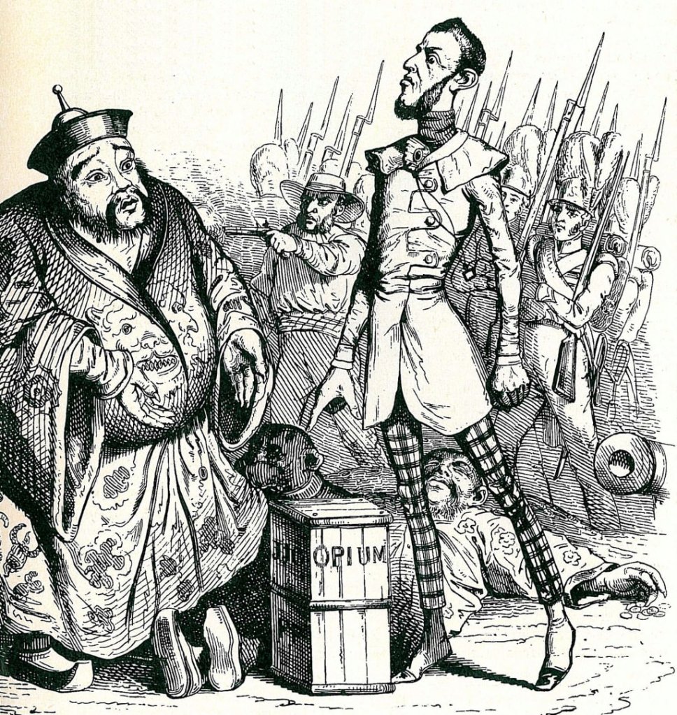 מדינות המערב לא רק השתמשו באופיום, אלא גם סחרו בו וההקשר המוכר ביותר לכך הן מלחמות האופיום שבריטניה ניהלה כנגד סין, במטרה לאלץ אותה להיפתח למסחר. על מלחמות האופיום לא אכביר פה מילים ורק אזכיר, שבזיכרון הסיני מלחמת האופיום הראשונה שהחלה ב-1839 והביאה לחתימת הסכם נאנקינג המשפיל ב-1842, הייתה ראשית "מאה שנות ההשפלה הלאומית" שהסתיימו רק עם המהפכה שהוביל מַאוֹ דְזֶה־דוּנְג. לא סתם הכינוי הסיני באותה עת לאופיום היה "בוץ נוכרי".
