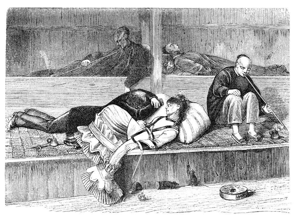 שגשוג סחר האופיום, המורפין ההרואין בשלהי המאה ה-19, הביא את ארה"ב ובריטניה וכמובן את סין, לשיאים של מגפת אופיאטים. העיתונות הסנסציונית והגזענית של התקופה, לצד ספרות הפשע שיצרו סופרים כמו דיקנס, קונן דויל ואוסקר ווילד, האשימה את מגפת ההתמכרויות ב"מאורות האופיום" של מהגרים סינים. מטפורת "מאורות האופיום" הייתה קלישאה טובה לתאר באמצעותה את עולם הפשע של התקופה, אך בפועל, האשם האמיתי במגפה היה הממסד הרפואי.