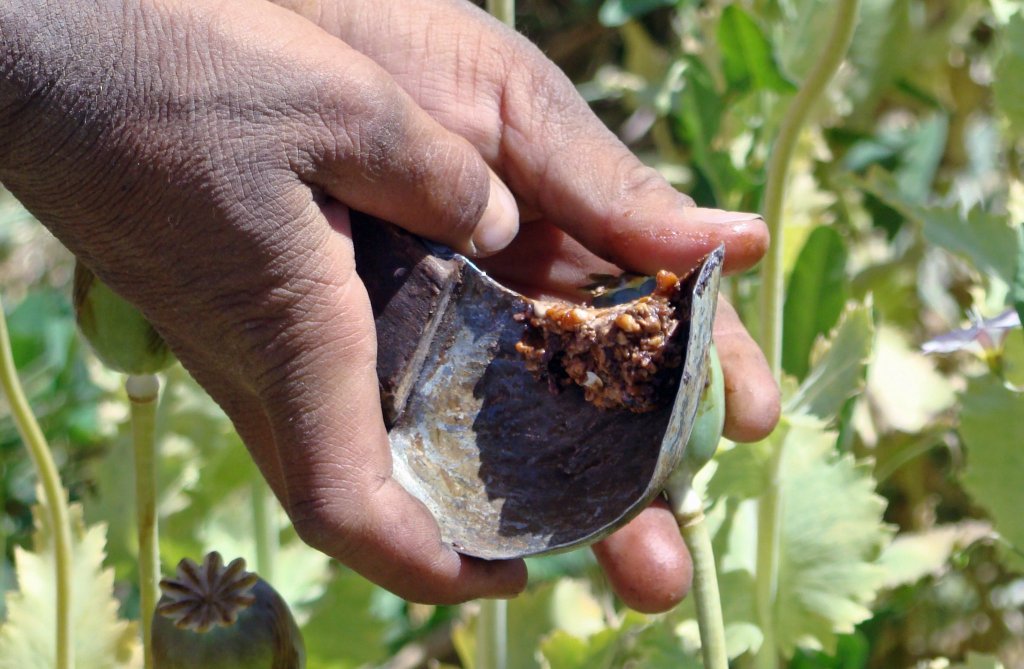 "חליבת האופיום" ע"י גירוד השרף מהפקעת