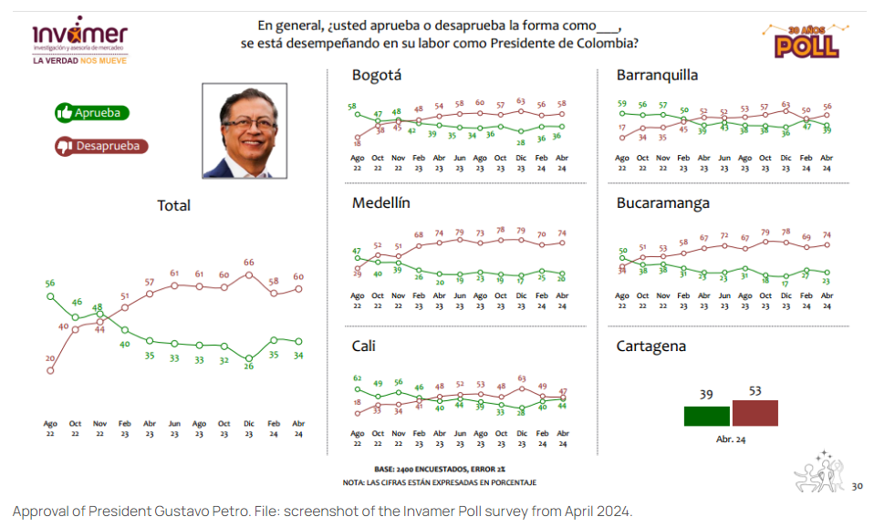 אז לאן הולכים היחסים בין שתי המדינות? אנסה לסיים במבט חיובי. אם מישהו מחפש סימן מעודד לעתיד היחסים בין שתי המדינות, הסקר מראה שהחל מאוקטובר 2023 חלה קפיצה בדעת הקהל שרואה בפטרו כמי שהרעה את יחסי החוץ של קולומביה. היפוך מהתפיסה שראתה בו כמי ששיפר אותם לאחר בחירתו. אבל הנתון הזה בא בתוך בליל כישלונות במדיניות החוץ שלו, מול וונצואלה, ארגנטינה, מקסיקו ועוד. כך שקשה לומר עד כמה היחס שלו לישראל קשור, אבל עצם זה שחלה קפיצה בנתון באוקטובר היא בהחלט מעניינת. בכל מקרה, נותרו לפטרו כשנתיים לכהונה והוא מנוע מבחירה מחדש, אז אולי אז, האהבה הקולומביאנית שלנו תחזור.